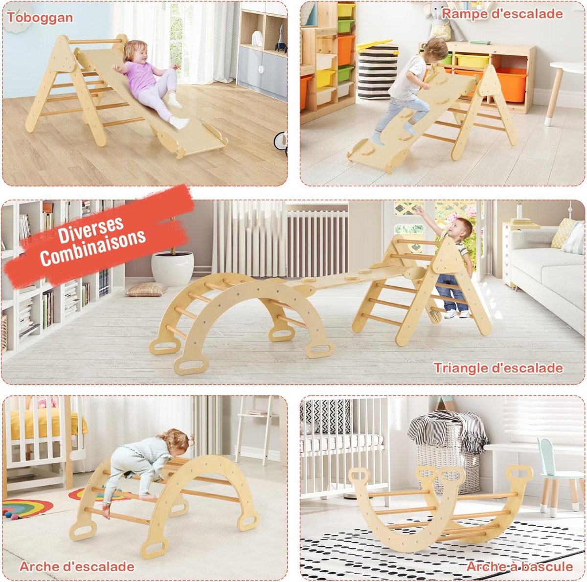 L’aire de jeux Montessori est fabriquée en bois massif de hêtre naturel, garantissant ainsi une structure stable et solide. Les enfants peuvent y grimper en toute sécurité, avec une charge maximale supportée de 50 kg. De plus, chaque bord est soigneusement poli pour respecter la peau délicate des enfants.