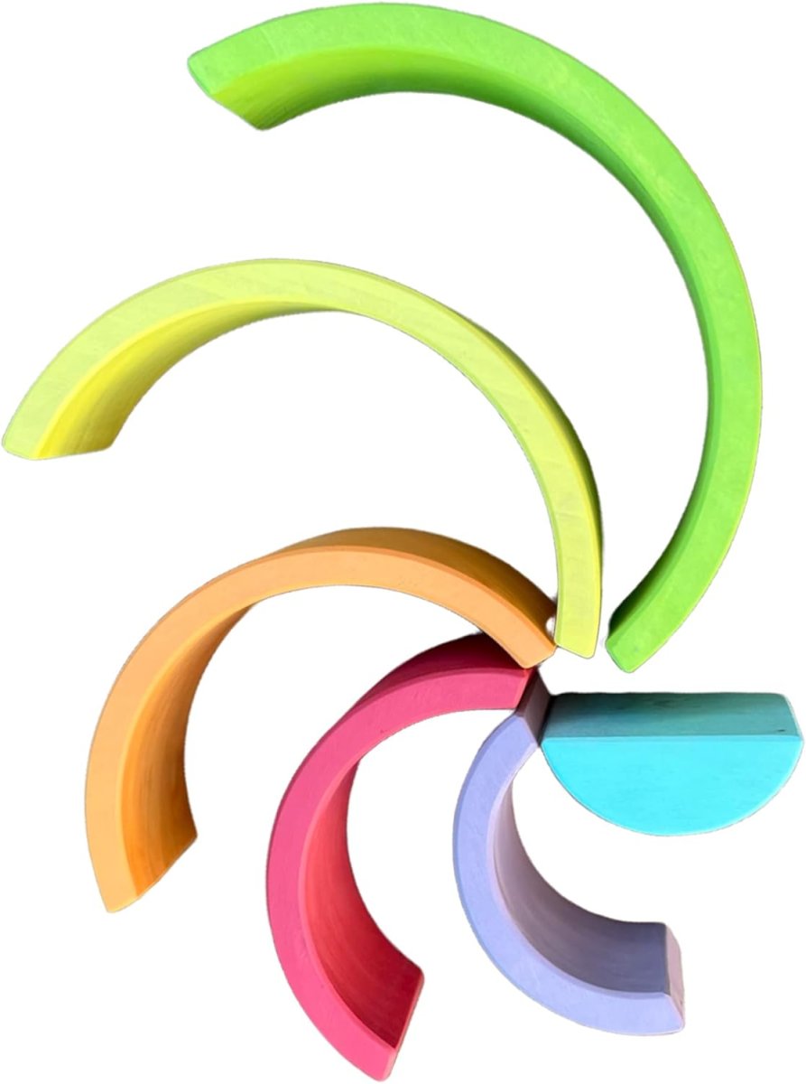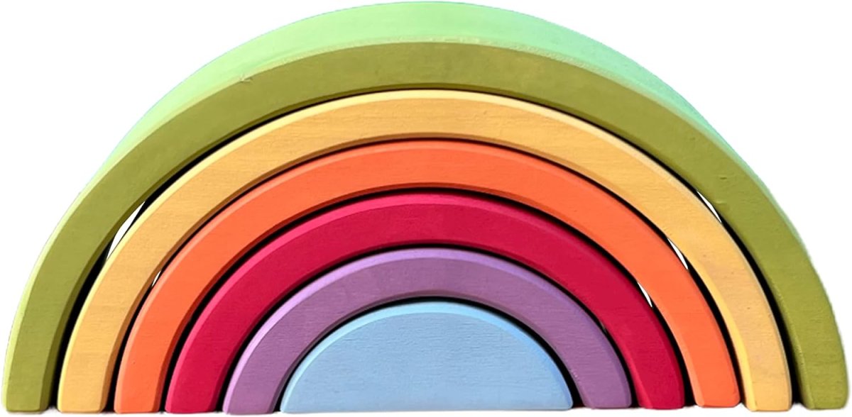Un trésor de créativité : l’arc-en-ciel Montessori en bois pastel