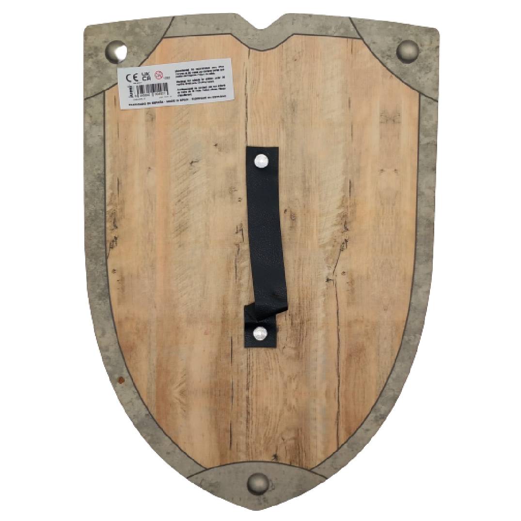 Bouclier en bois décoré aux armes d’un futur chevalier du Moyen Age : dragon, lion ou château