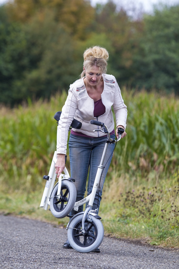 Le City, le cycle déambulateur de Van Raam, est idéal pour les personnes ayant des difficultés à marcher ou à rester debout pendant une longue période sans pour autant avoir besoin d’un fauteuil roulant ou sans être séduit par l’idée d’utiliser un déambulateur. Grâce à la selle du cycle déambulateur City, le poids de votre corps est réparti, ce qui soulage les articulations de vos jambes et facilite la marche, vous permettant ainsi de parcourir de plus longues distances sans effort. De plus, le City est un cycle déambulateur pliant et ultra léger, vous pouvez donc facilement le transporter dans votre voiture, dans le bus ou dans le train.