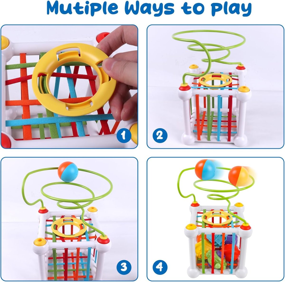 Ce jouet éducatif pour bébé se distingue par sa conception ingénieuse. Il intègre un trieur de formes entouré de bandes élastiques douces, permettant aux enfants d’insérer et de retirer les blocs de différentes formes dans n’importe quelle direction. De plus, le cube d’activités est agrémenté d’une piste en forme de spirale et deux cordes de perles coulissantes pour diversifier les possibilités de jeu.