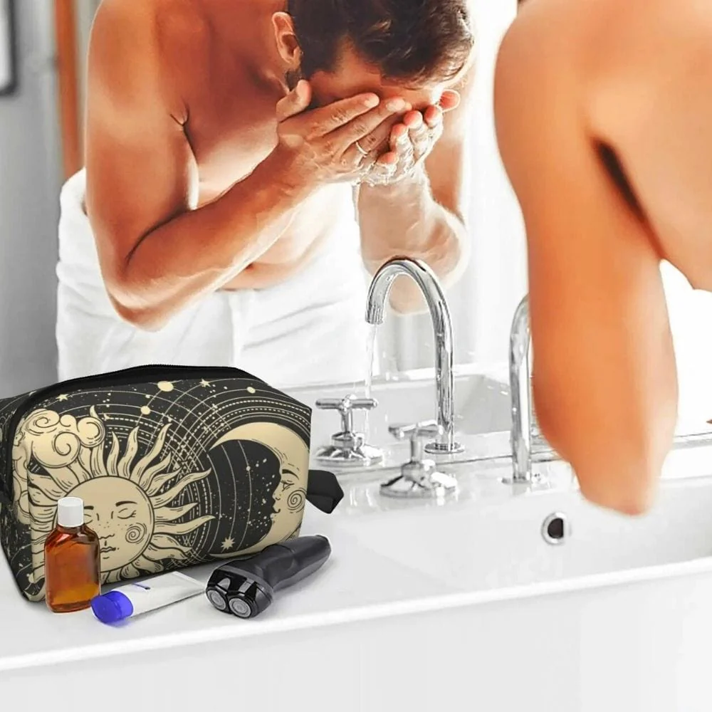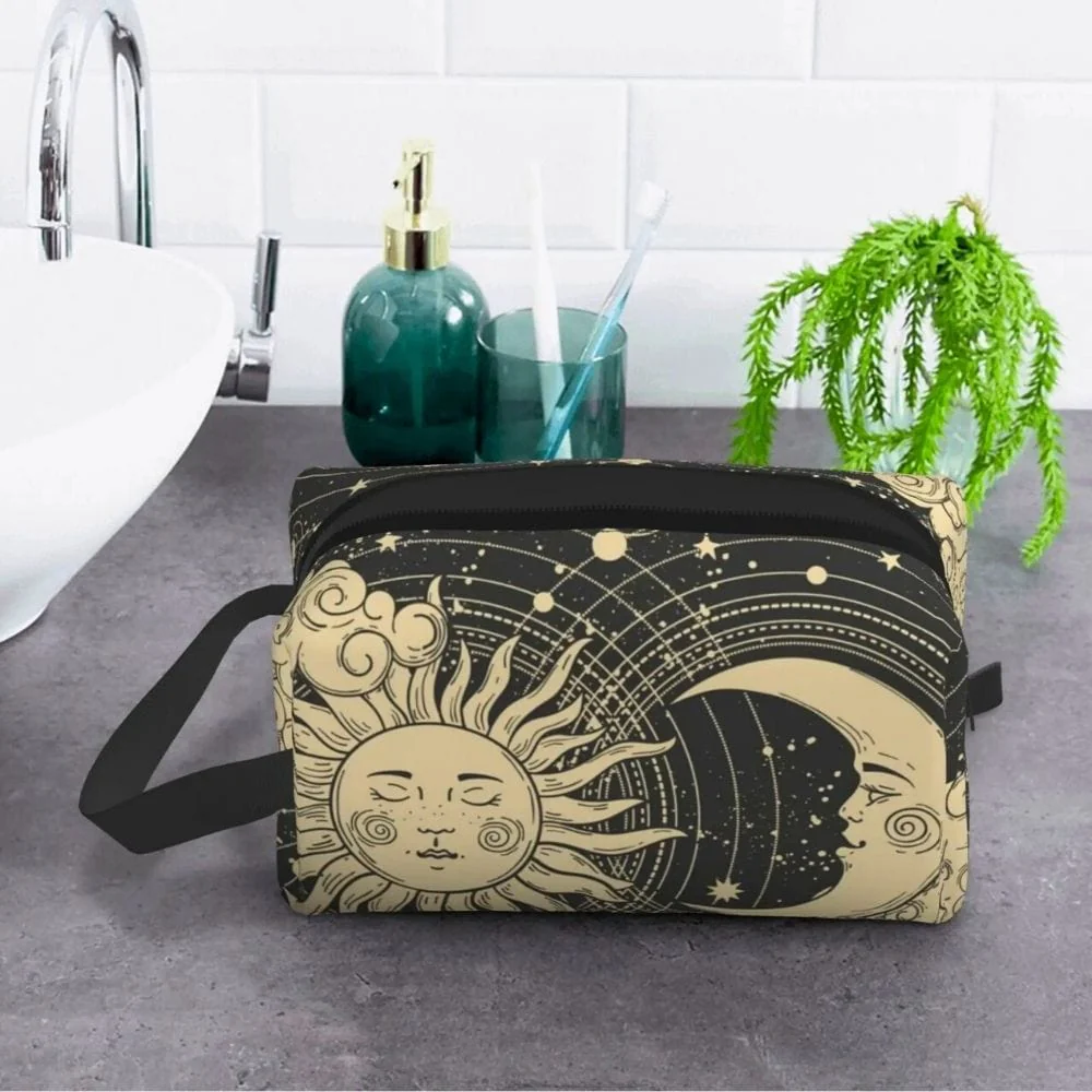 Notre Dessin Trousse De Toilette est un accessoire de voyage unique qui se démarque par son design artistique mettant en scène le soleil et la lune. Cet élégant sac à cosmétiques étanche est parfait tant pour les hommes que pour les femmes, offrant une solution de rangement pratique et organisée. Fabriqué en tissu Oxford et polyester, il garantit durabilité et étanchéité. Idéal pour le voyage, le quotidien, ou même pour des escapades nocturnes, ce sac est léger, facile à transporter et à nettoyer. Son grand espace intérieur est suffisant pour transporter tous vos essentiels de beauté et de rasage.