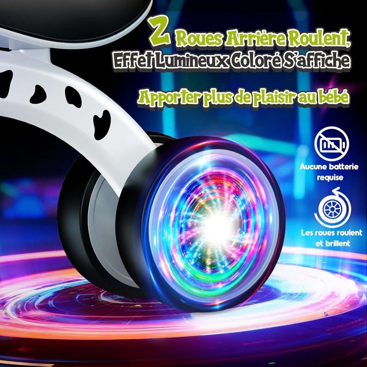 La draisienne bébé 1-2 ans avec éclairage est bien plus qu’un simple jouet. Équipée de roues LED colorées qui s’illuminent au mouvement, elle transforme chaque balade en une expérience magique et captivante. Ces roues innovantes, fonctionnant sans pile, brillent même sous la lumière du jour et offrent un véritable spectacle lumineux à la tombée de la nuit. Ce détail amusant et ludique saura émerveiller les tout-petits tout en stimulant leur curiosité naturelle.