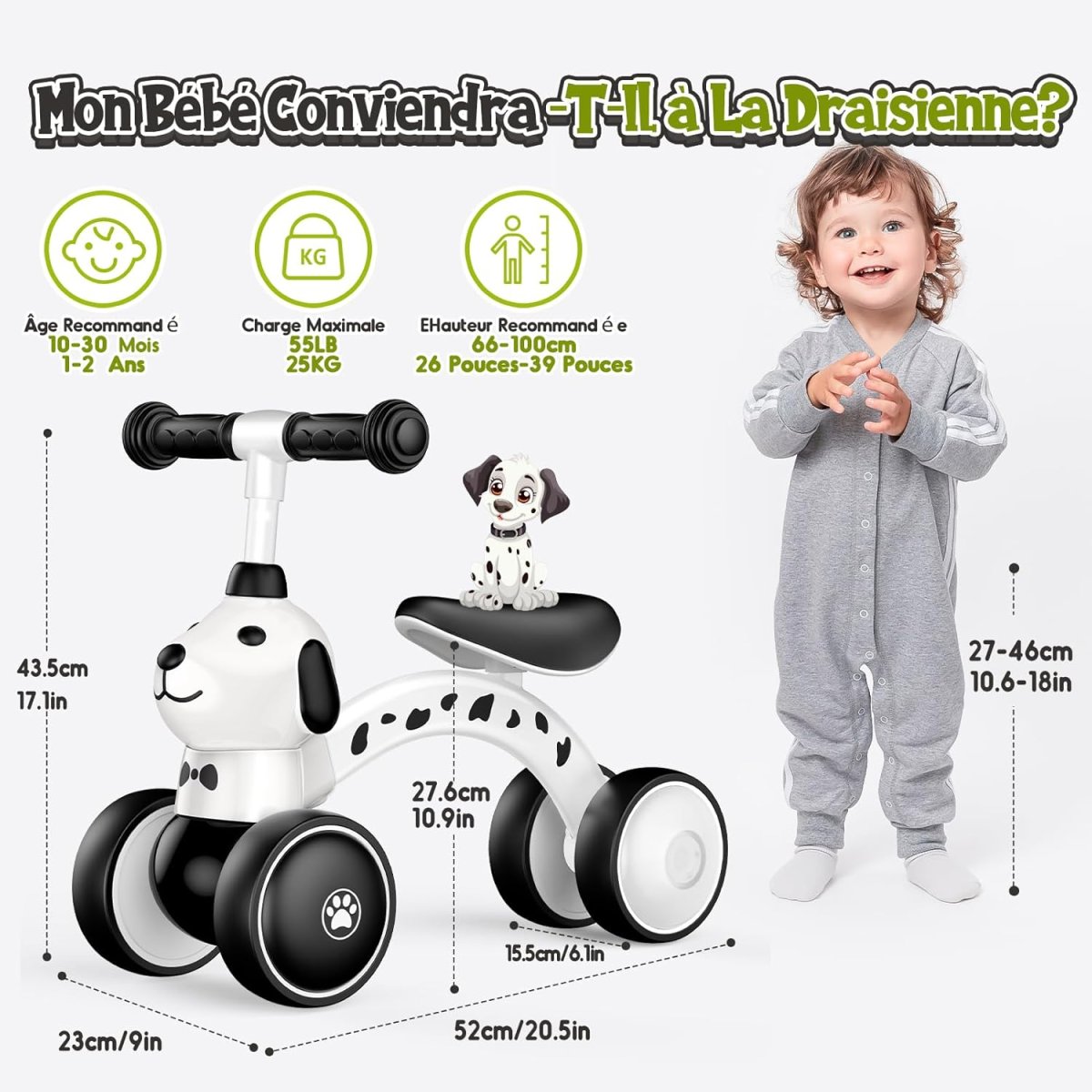 Avec ses fonctionnalités innovantes et son design adapté aux tout-petits, cette draisienne est le cadeau parfait pour un enfant âgé de 10 à 24 mois. Elle convient aux enfants mesurant entre 26 et 39 pouces, avec un poids maximum de 55 livres. Offrez-lui ce jouet unique qui allie amusement, apprentissage et sécurité. Ce sera sans aucun doute un souvenir inoubliable pour lui comme pour vous !