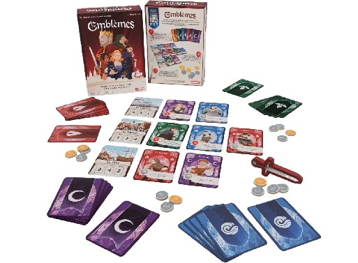 Avec Emblèmes, déployez votre influence sur les territoires du royaume et remportez ainsi des pièces d’or qui vous rapprocheront du pouvoir. Saurez-vous guider votre famille et porter haut les couleurs de son emblème ? Ruse, stratégie et affrontements intenses : placez vos cartes au bon moment, dans le bon lieu… et surclasser vos adversaires !