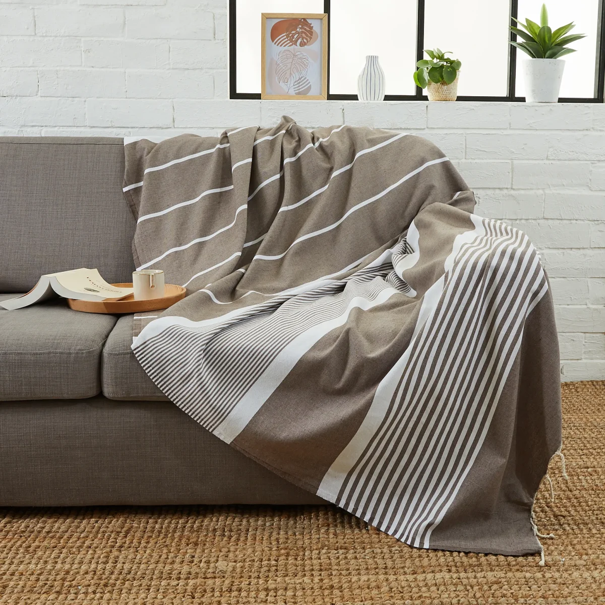 Optez pour l’élégance en grand format avec la fouta XXL Classique, 200×300 cm, en coton recyclé, idéale pour partager à la plage, en pique-nique ou comme jeté de canapé à la maison.