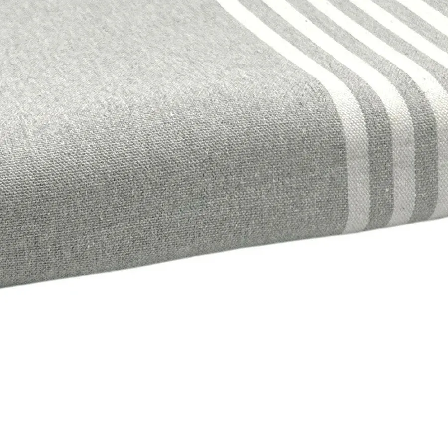 Personnalisez cette fouta XXL rayée gris clair avec le message de votre choix. Il sera brodé avec le plus grand soin au sein de notre atelier basé en France. Votre texte, d’un maximum de 20 caractères, sera brodé dans la partie inférieure avec un fil blanc. L’expédition d’une fouta brodée prend 48h de plus.