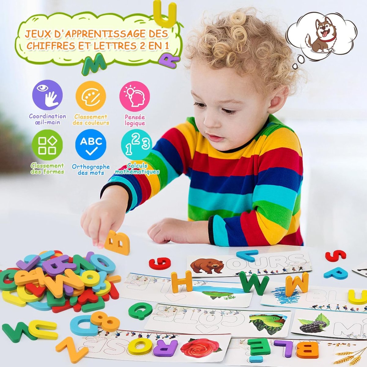 Découvrez le jeu éducatif Montessori, un outil pédagogique exceptionnel qui offre une approche innovante de l’apprentissage de l’orthographe française pour les enfants. Cet ensemble pédagogique, conçu spécifiquement pour les jeunes apprenants âgés de 24 mois à 5 ans, est doté de dimensions compactes (23 x 4 x 0,1 cm) et d’un poids léger de 250 grammes, ce qui le rend facile à manipuler par les petites mains.