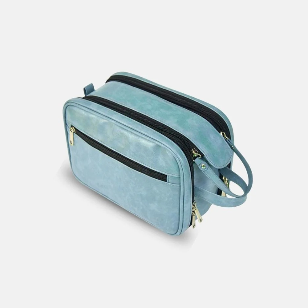 - Grande Capacité: Permet de ranger tous vos essentiels de toilette.