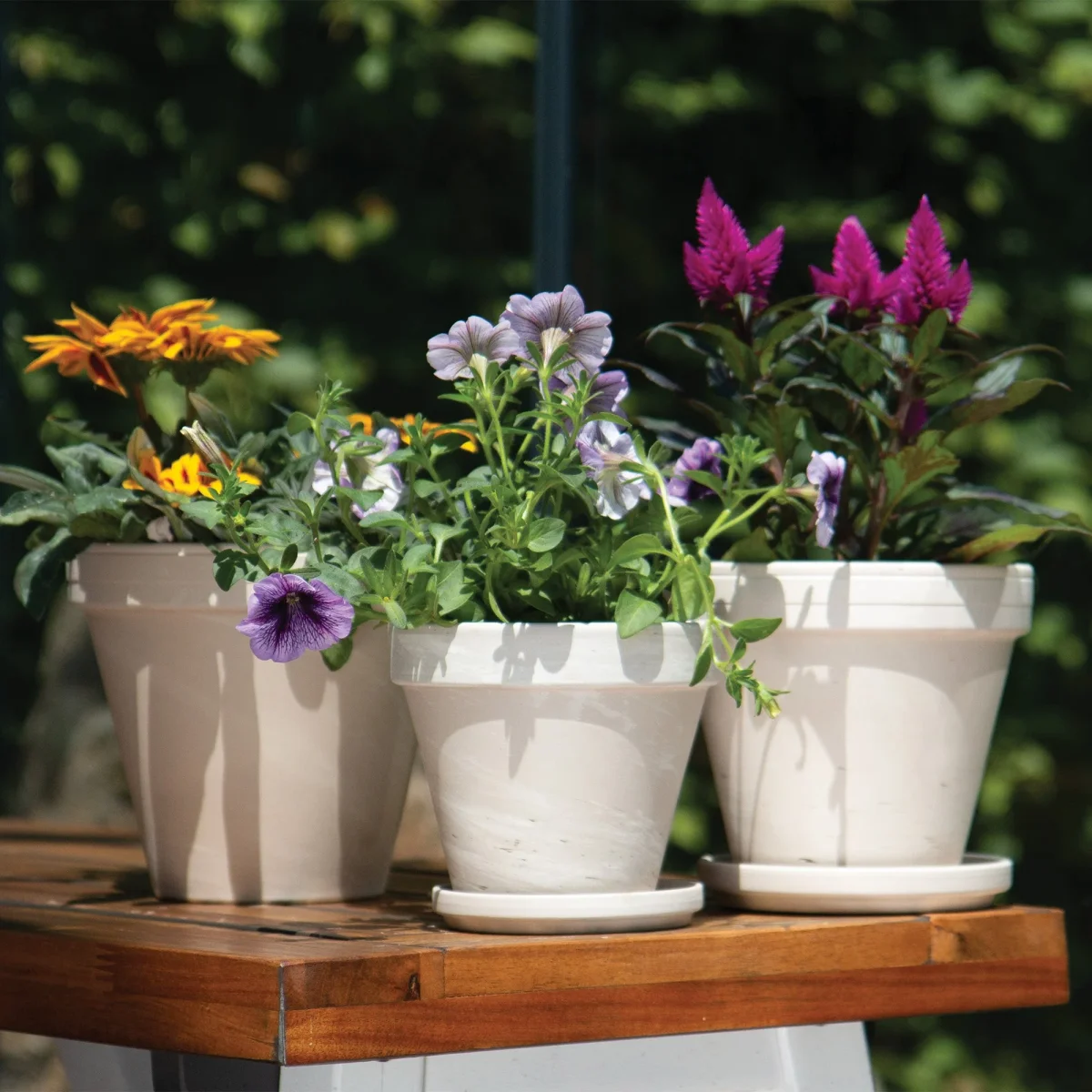 La forme de ce pot de terre cuite est une des formes les plus classique mais la couleur Granite Blanc lui confère beaucoup d’originalité et du renouveau. La renommée des pots de grès n’est plus à faire mais un petit renouveau est toujours bienvenu. La plupart des plantes d’intérieur et d’extérieur adorent les pots en terre cuite. Ces pots sont munis d’un trou de drainage. Il faut quand même les manipuler avec soin puisqu’ils sont en terre cuite. Ils sont aussi résistant aux UV. Comme la terre cuite est un matériel absorbant l’eau, il faut mettre ces pots à l’abri du gel durant l’hiver. Plusieurs format disponibles. Soucoupes disponibles.