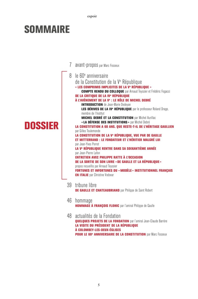 Revue Espoir n°191 – 60e anniversaire de la Constitution de la Ve République (automne 2018)