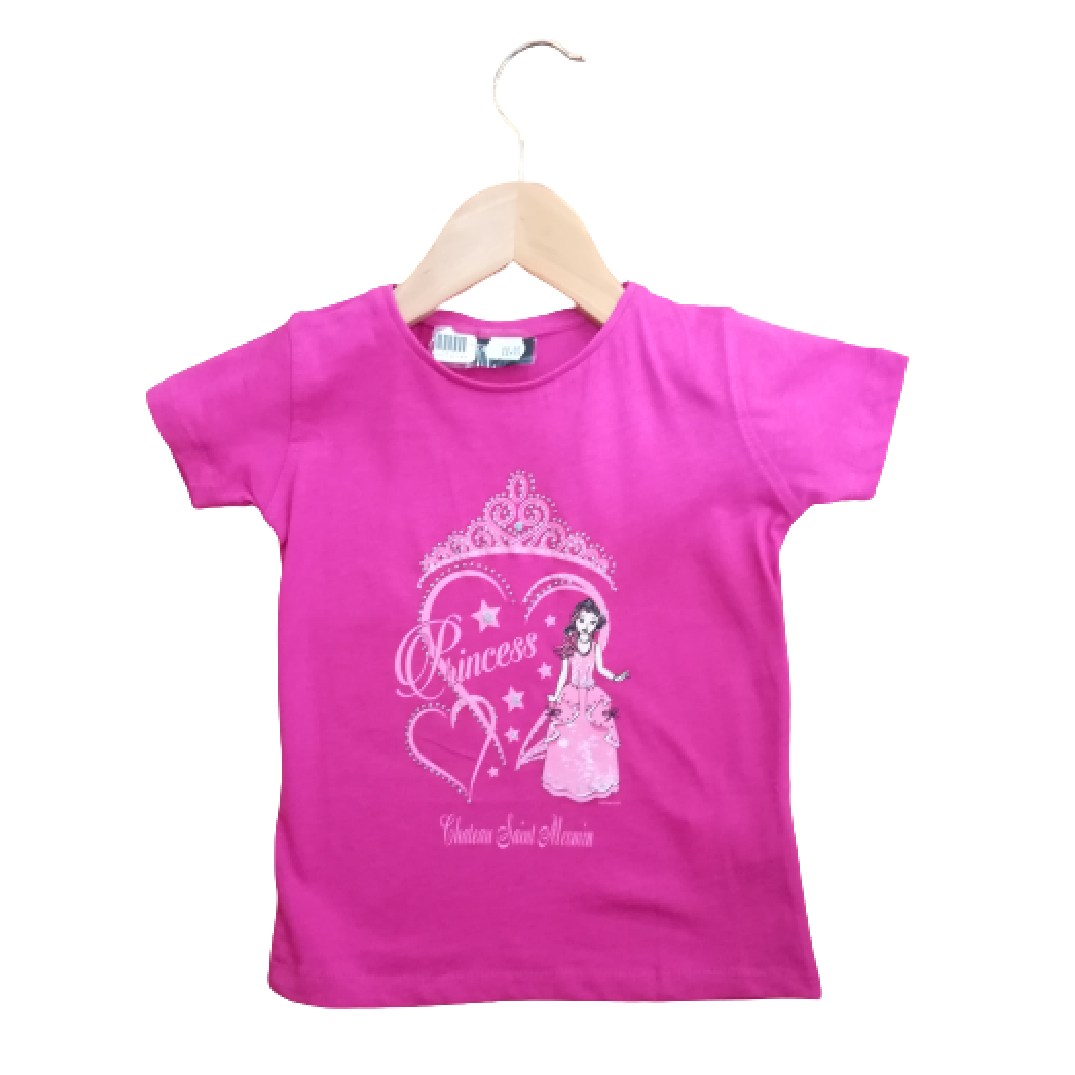 Un T-shirt d’enfant avec la décoration d’un grand corazon (cœur) pour princesse en herbe.