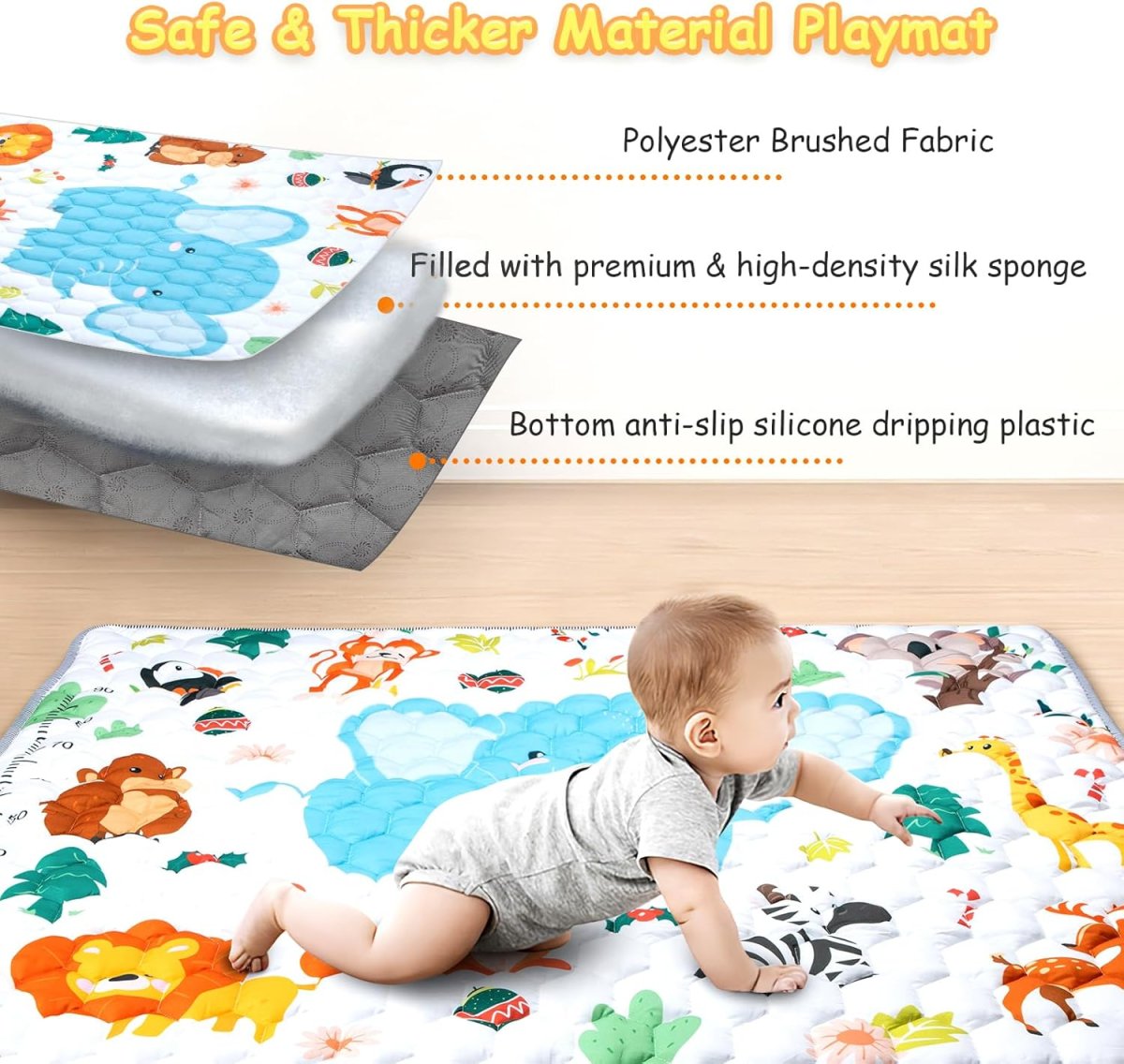 Le bien-être et la santé de votre bébé sont nos priorités. Le tapis d’éveil Montessori Funsland est fabriqué en coton et en polyester de haute qualité, doux et durables. Il est exempt de produits chimiques nocifs et respecte toutes les normes internationales de sécurité. Ce tapis, avec ses dimensions généreuses de 127 x 127 cm et son épaisseur de 1 cm, offre un espace de jeu confortable et sécurisé.