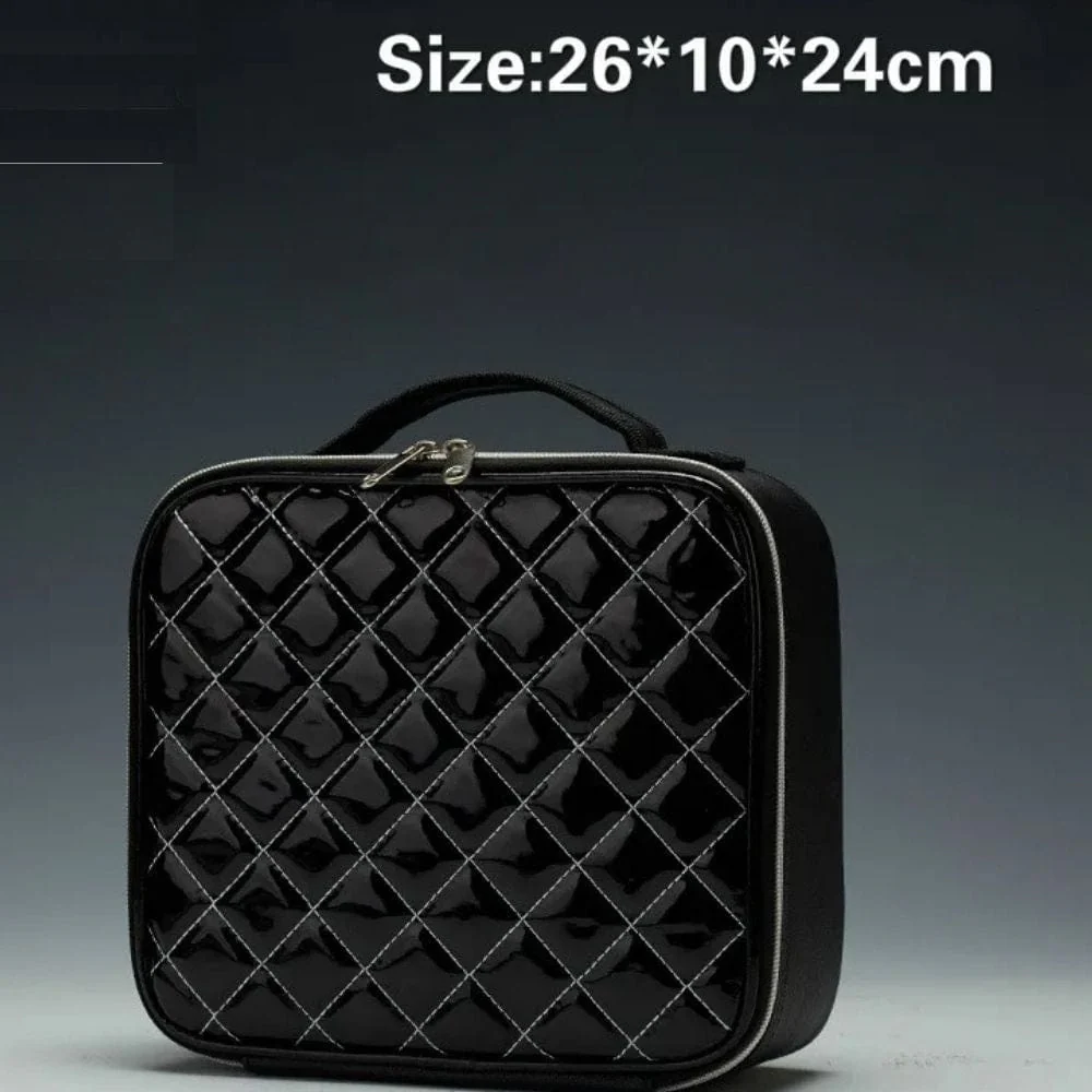 Avec son design chic en cuir noir matelassé et sa finition brillante, elle ne se contente pas d’être pratique, elle ajoute également une touche de glamour à votre routine de beauté. Conçue sous une forme de valise élégante et rigide, cette mallette de maquillage est spécialement équipée pour organiser méthodiquement vos pinceaux, palettes de maquillage, fonds de teint, vernis, rouges à lèvres, crayons, et bien plus encore, rendant chaque préparation aussi agréable qu’efficace.
