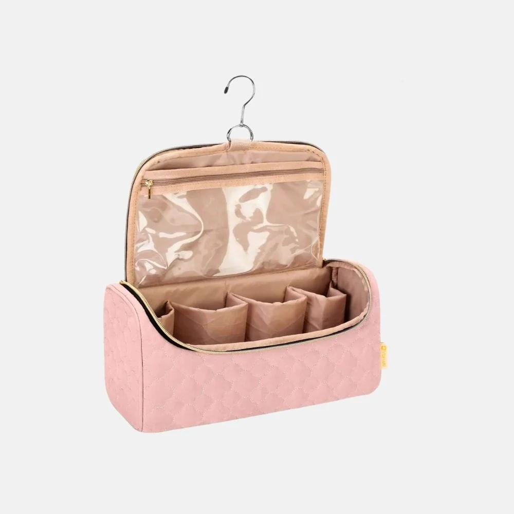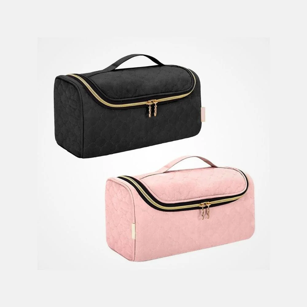 Dotée d’une poignée pratique, d’une fermeture éclair lisse et sans accroc, ainsi que d’une conception à large ouverture, accéder à vos articles de toilette, outils de maquillage, kits d’hygiène, shampoing, savon, gel douche, pommade, et même des accessoires de coiffure tels que les bigoudis, sèche-cheveux et lisseurs, devient un jeu d’enfant. La polyvalence de cette trousse en fait un choix idéal pour les femmes qui apprécient à la fois la fonctionnalité et le design élégant, disponible en deux couleurs, noir et rose, pour s’adapter à tous les goûts.